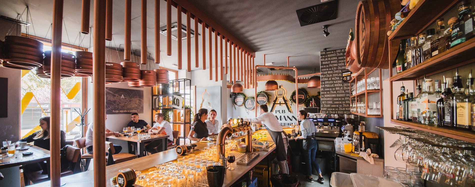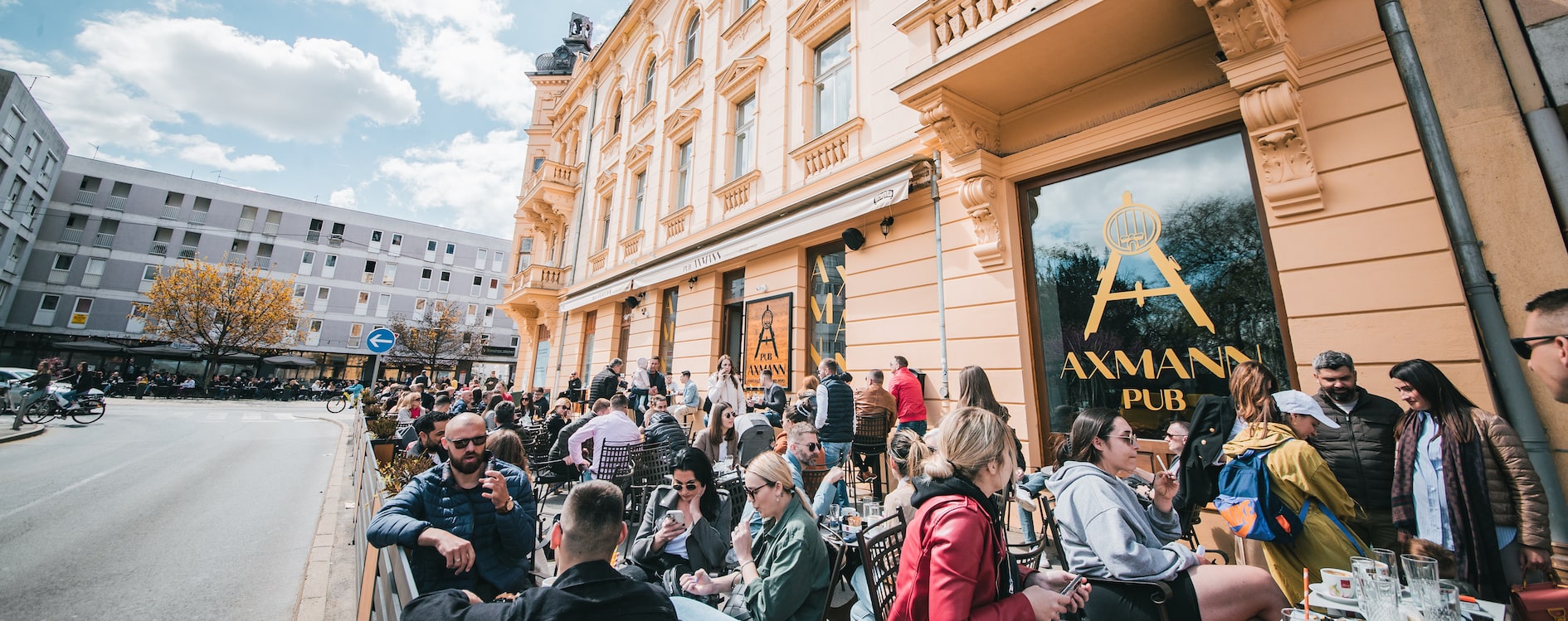 Pub u samom centru grada sa atraktivnim interijerom savršeno je mjesto za jutarnju kavu, piće nakon posla i zabavni izlazak uz svirke uživo. Axmann je dobio ime prema osječkom arhitektu i urbanistu Viktoru Axmannu koji je jedan od najzaslužnijih osoba za današnji izgled grada Osijeka. Njegova najznačajnija djela krase naše zidove, a neka od njih možete vidjeti kroz izlog našeg puba. 2024. godine otvoren je i Axmann caffe u osječkom kvartu Bosutsko koji interijerom i atmosferom prati viziju tvrtke.
